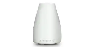 Hvid aromadiffuser med et enkelt design – let at betjene, og så kan den køre op til 6 timer på 100 ml vand.