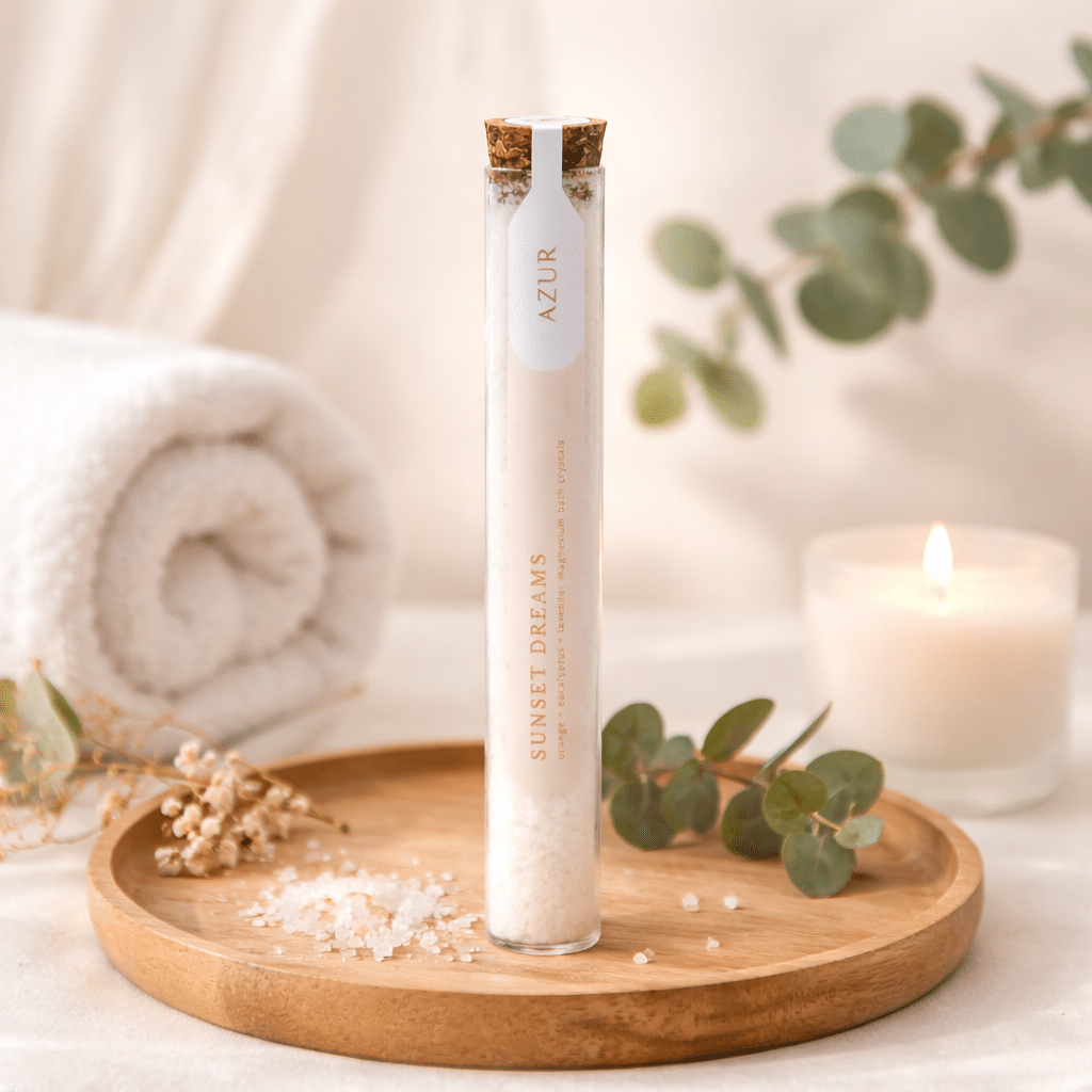 Azur Magnesium Badesalt i Glasrør – Sunset Dreams