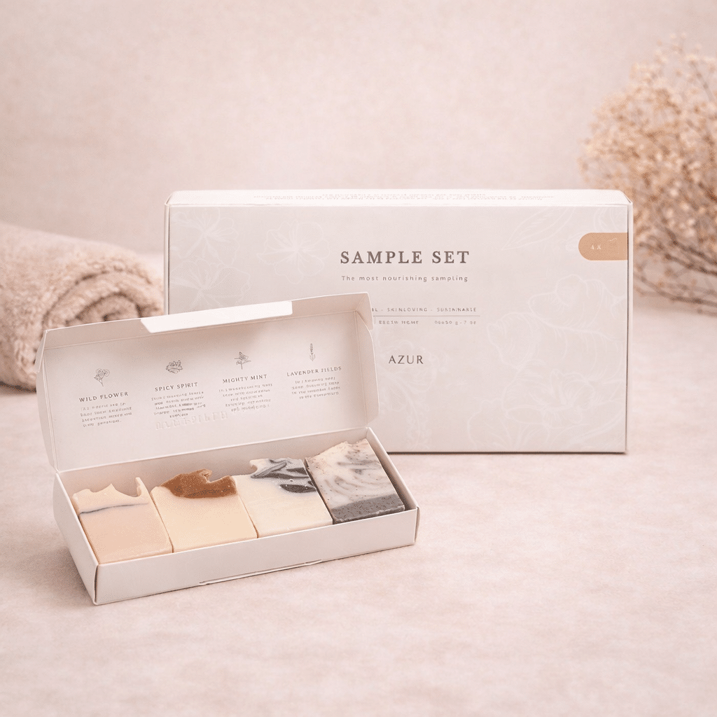 Azur Gaveæske med 4 naturlige faste sæber