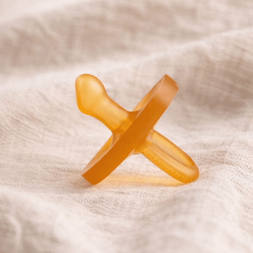 Naturgummi er et blødere materiale end fx silikone, og samtidig er naturgummi mere hygiejnisk, fordi sutten er støbt i et stykke som gør, at der ingen revner og sprækker er, hvor bakterier kan gemme sig i.