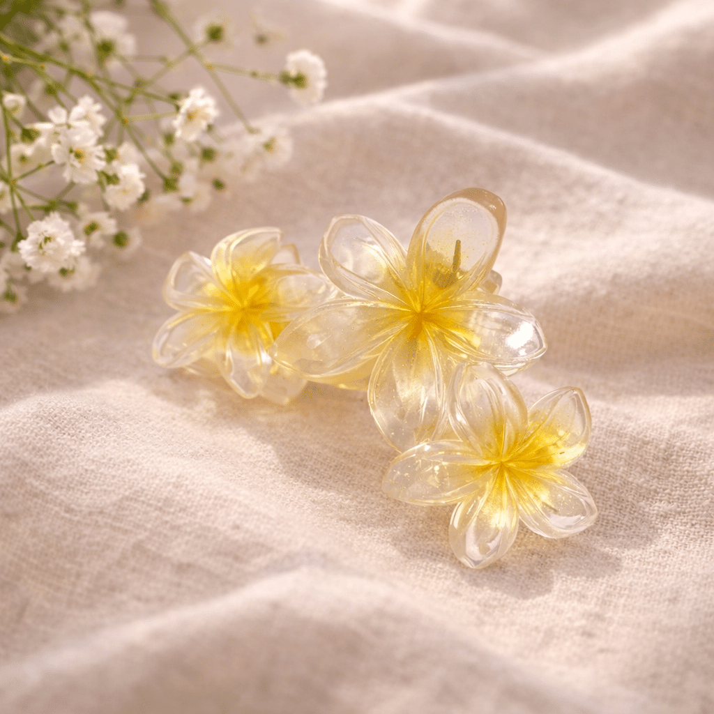 Denne hårklemme med sommergule blomster både praktisk og dekorativ og gør det nemt at samle håret i en flot opsætning. Den holder håret sikkert på plads og kan bruges til både løse og mere elegante frisurer.