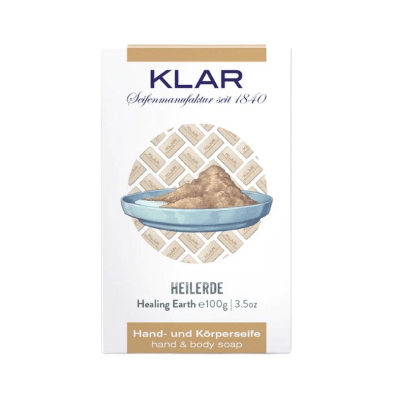 KLAR Hånd- og Kropssæbe er en neutral sæbe indeholdende Tysk udvundet ler som binder fedt og bakterier på huden.