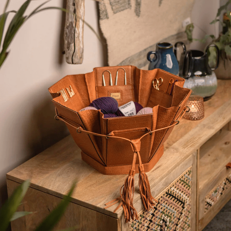 Den rummelige boks giver dig plads til både garn, igangværende projekter og alt dit tilbehør – samtidig med at den smukt indgår som en del af din indretning. Stil den på gulvet, en hylde eller dit arbejdsbord, og lad den tilføre varme og eksklusivitet til rummet.