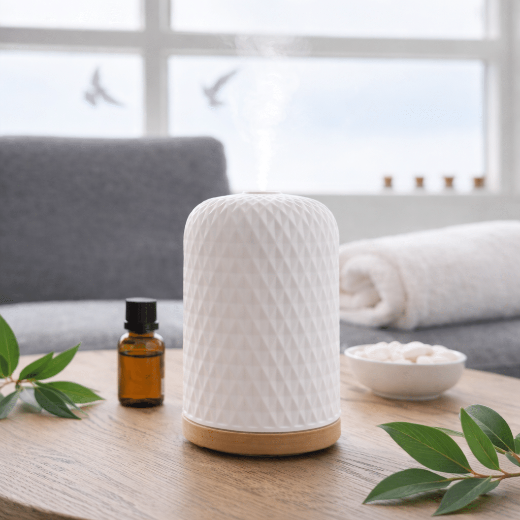 Med en fin, kølig damp spreder aromadiffuseren dine æteriske olier og duftolier i rummet og skaber en afslappende atmosfære – perfekt til stue, soveværelse, badeværelse eller hjemmekontor.